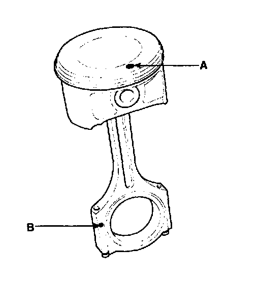2) The piston front mark (A) and the connecting rod front mark (B) must face the timing belt side of the engine.