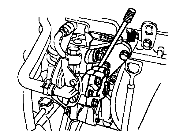 2. Put a bar or equivalent, between the bracket and the oil pump and adjust the tension so that the belt deflection is within the standard value.