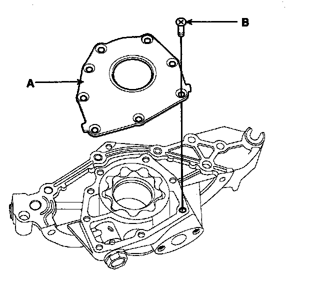 2) Install the oil pump cover (A) to front case with the 8 screws (B).