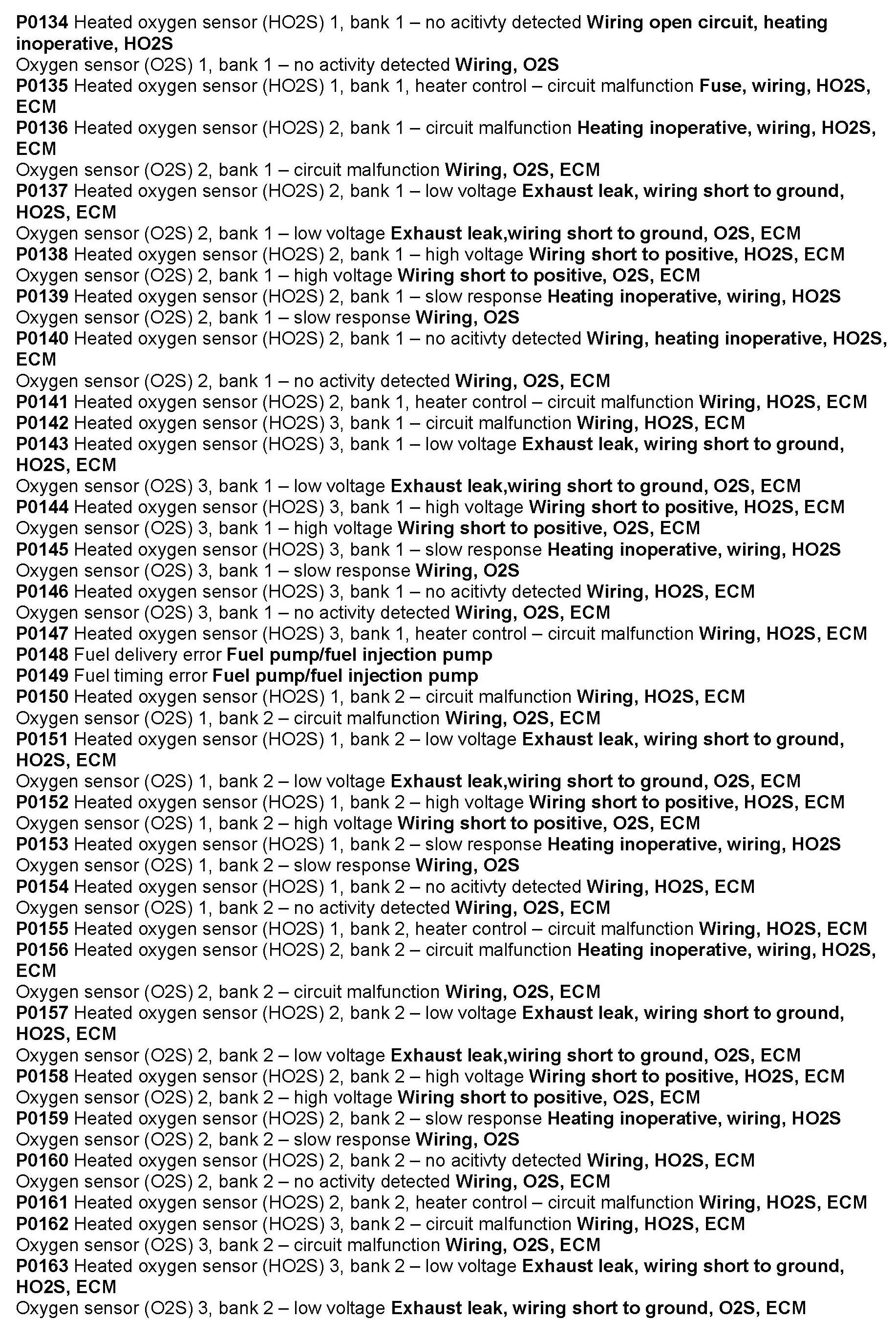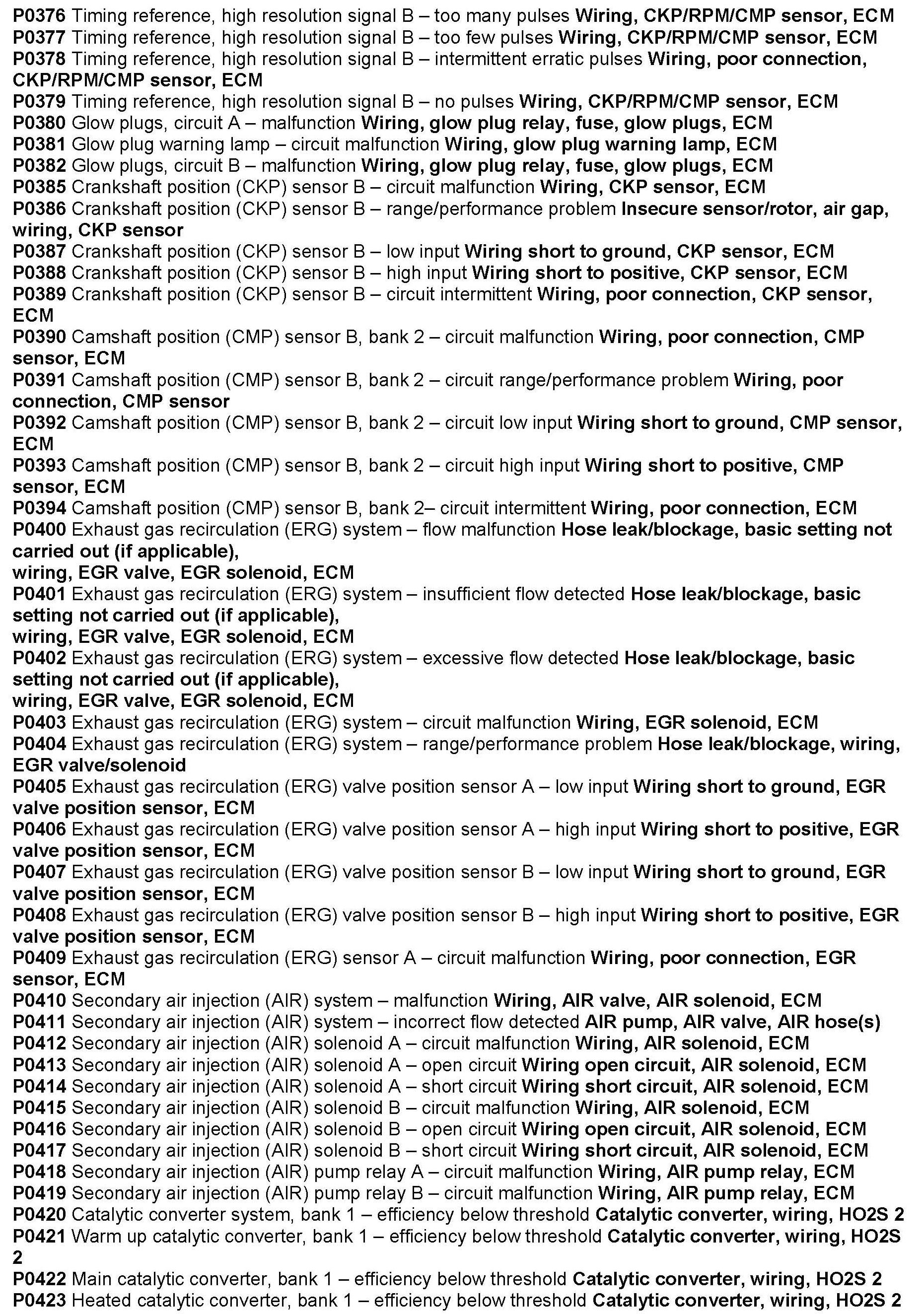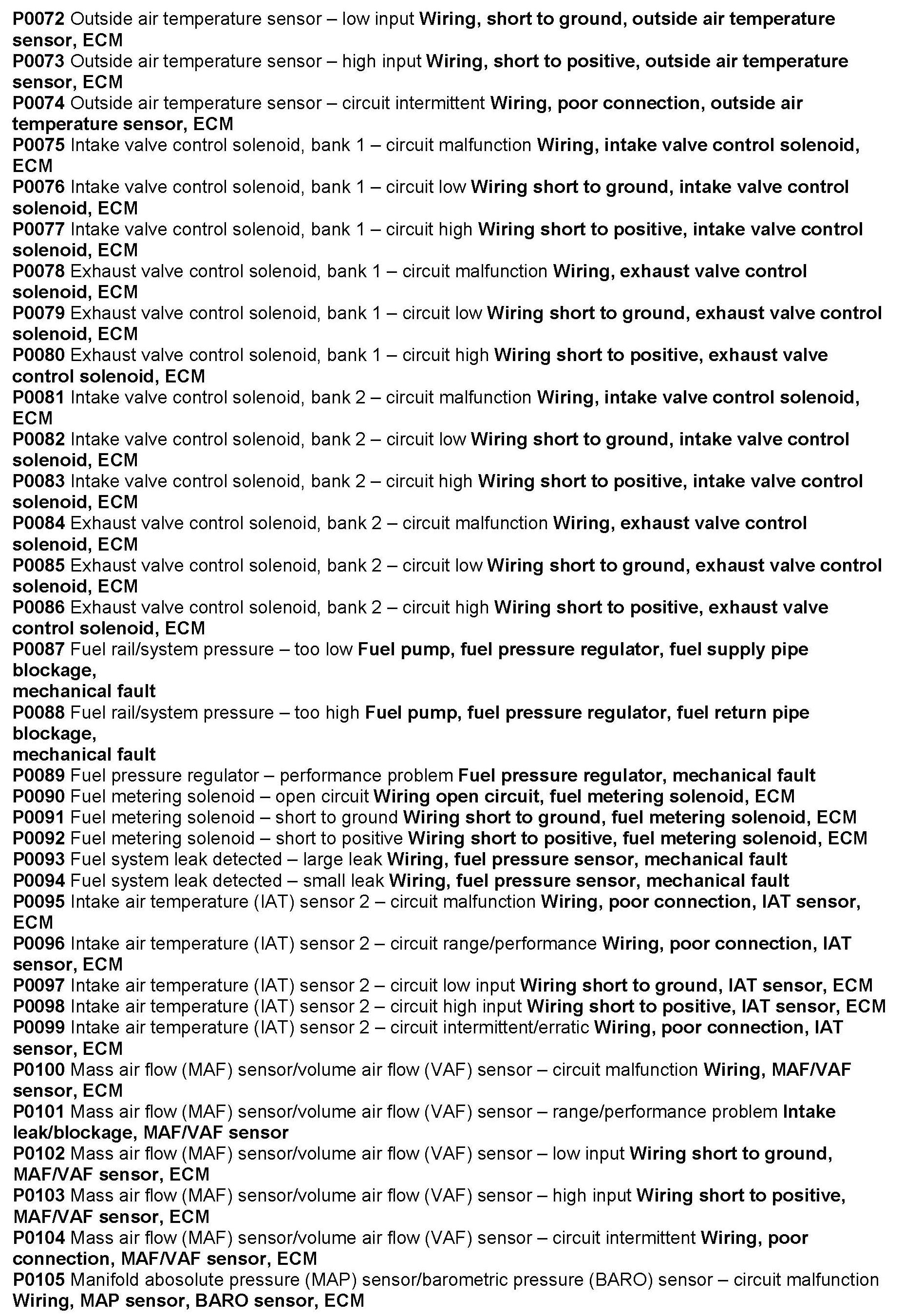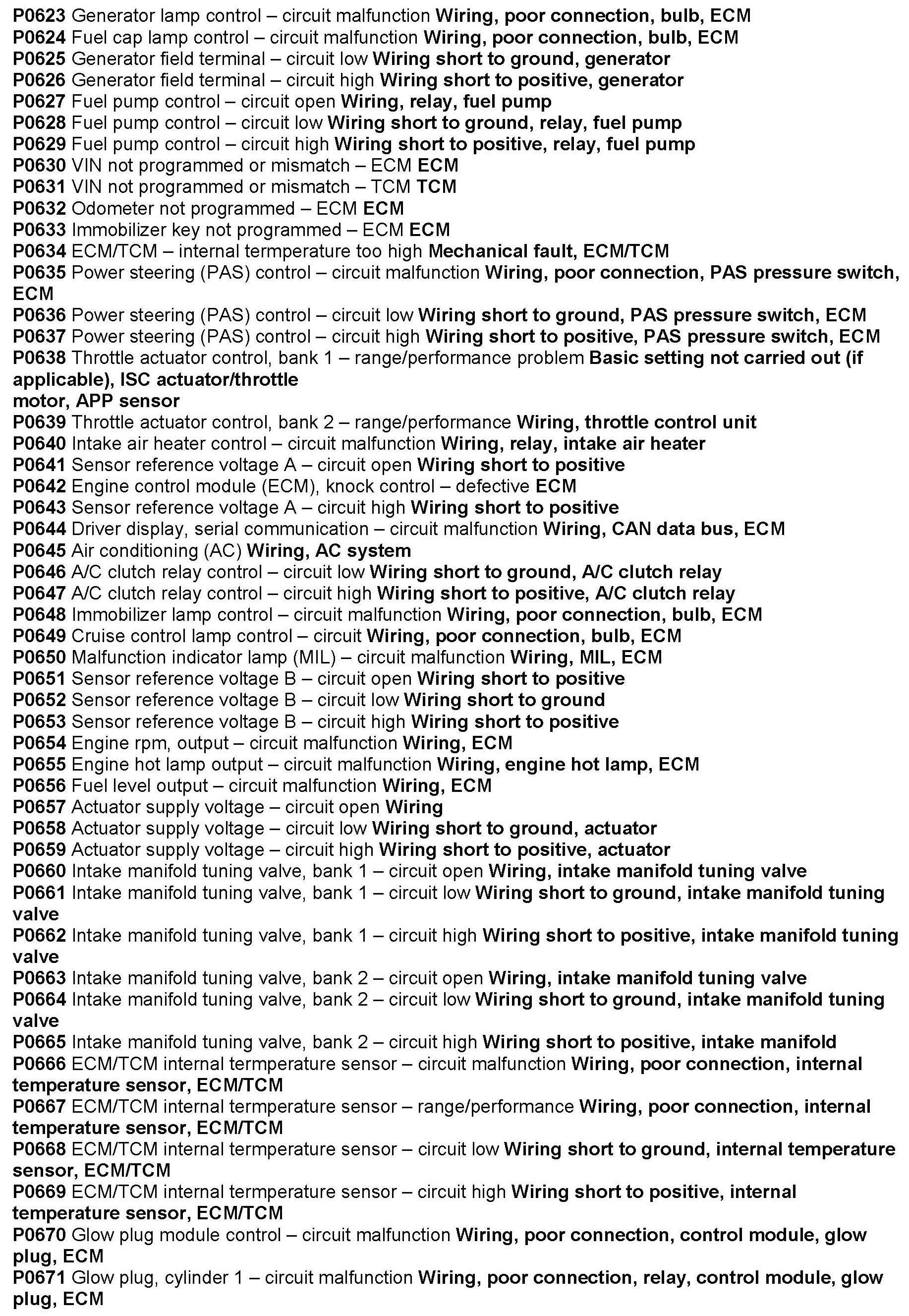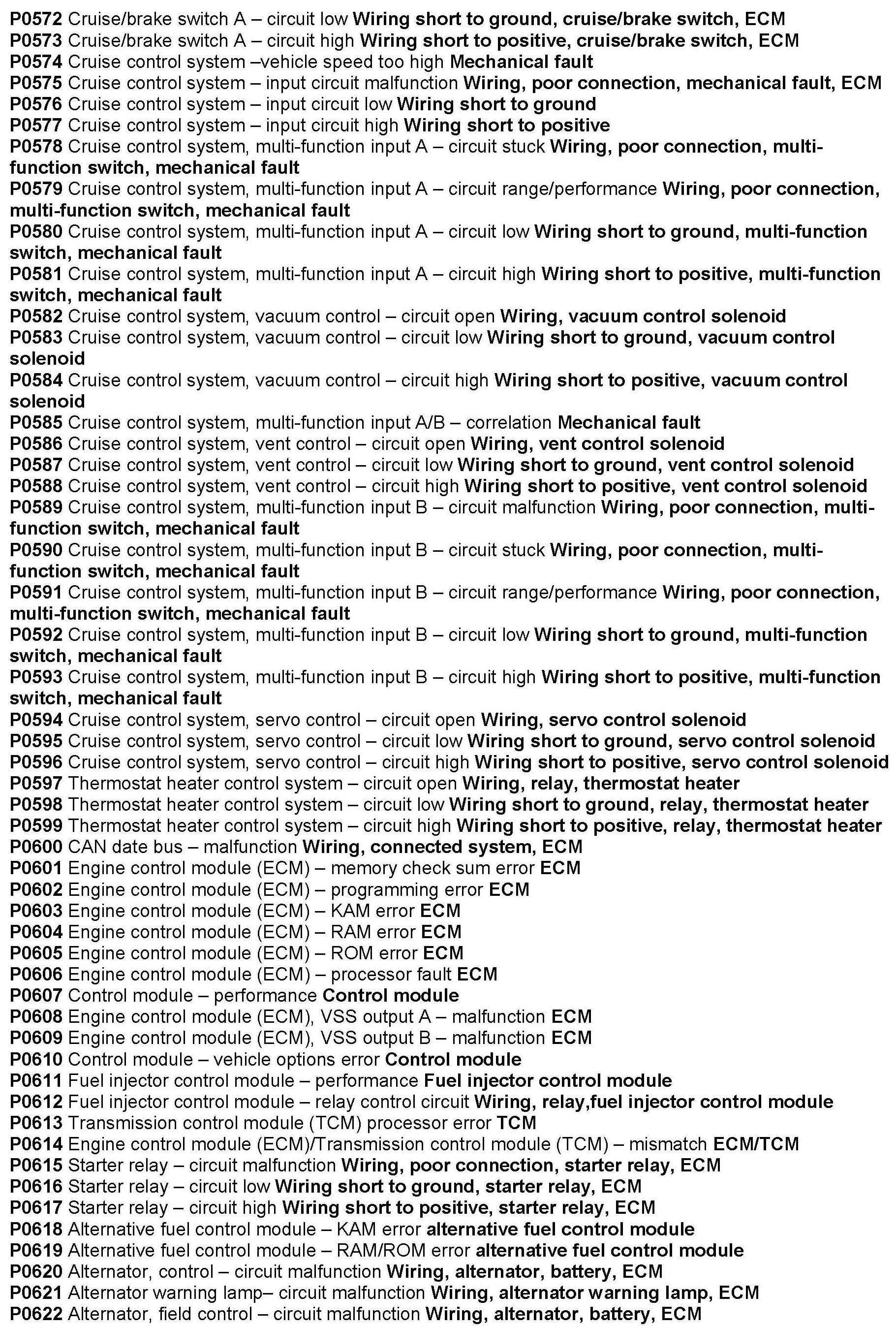 Computers/Controls - Diagnostic Trouble Code List