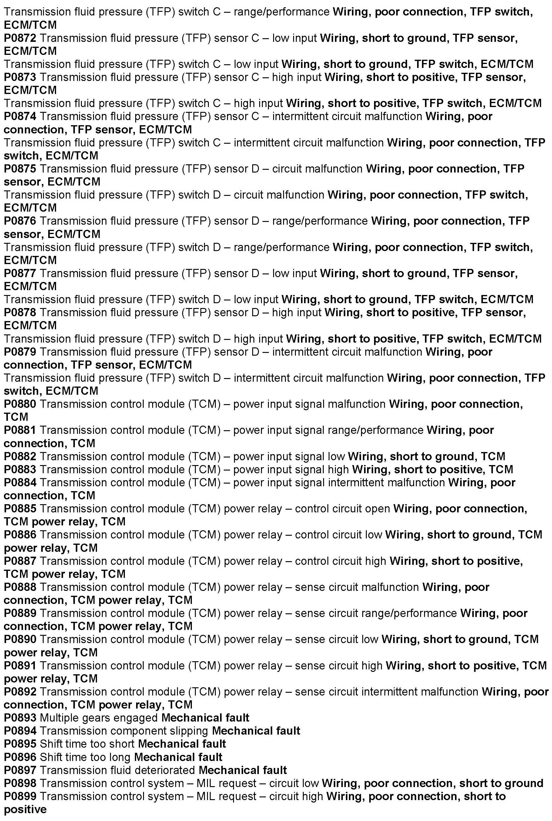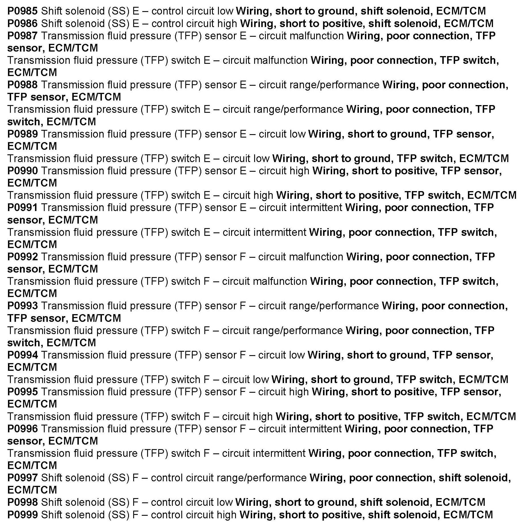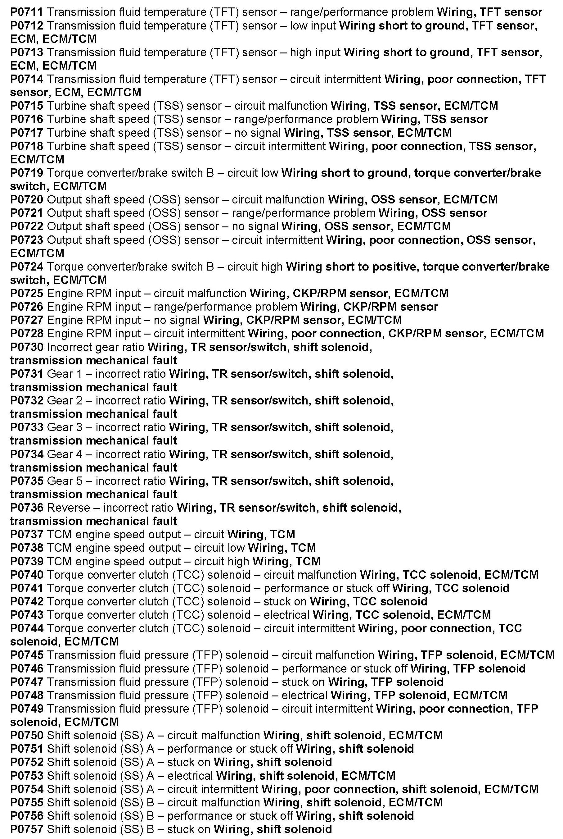 P0711 thru P0999