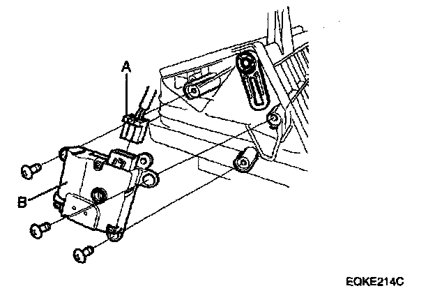 1. Disconnect the 7P connector (A) from the inlet actuator (B). Remove the self-tapping screws and the inlet actuator from the blower unit.
