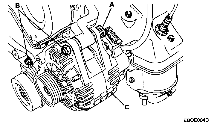 4. Pull out the through bolts(A) and nuts(B) then remove the generator(C).