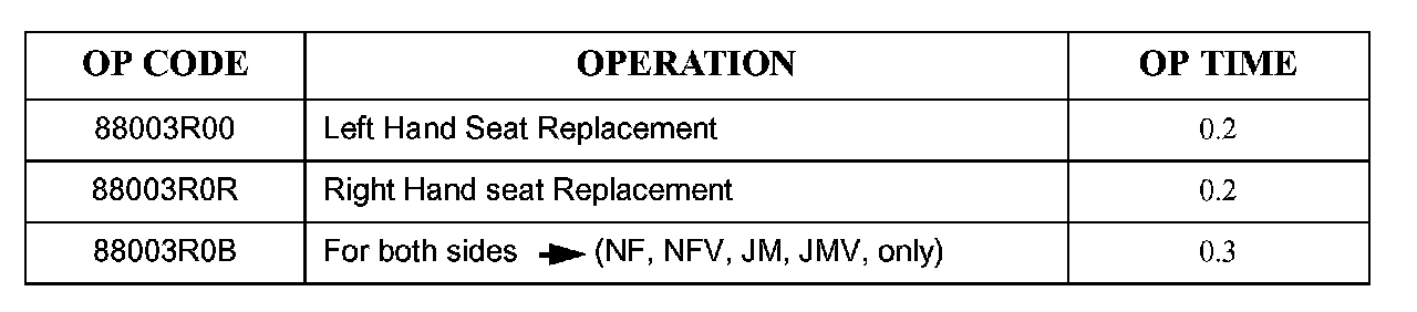 Normal warranty coverage applies. This procedure is part of the seat installation time for procedures that require the seats to be removed and installed. If a seat requires adjustment without additional parts replacement, use operation code 88003ATT*, N95,