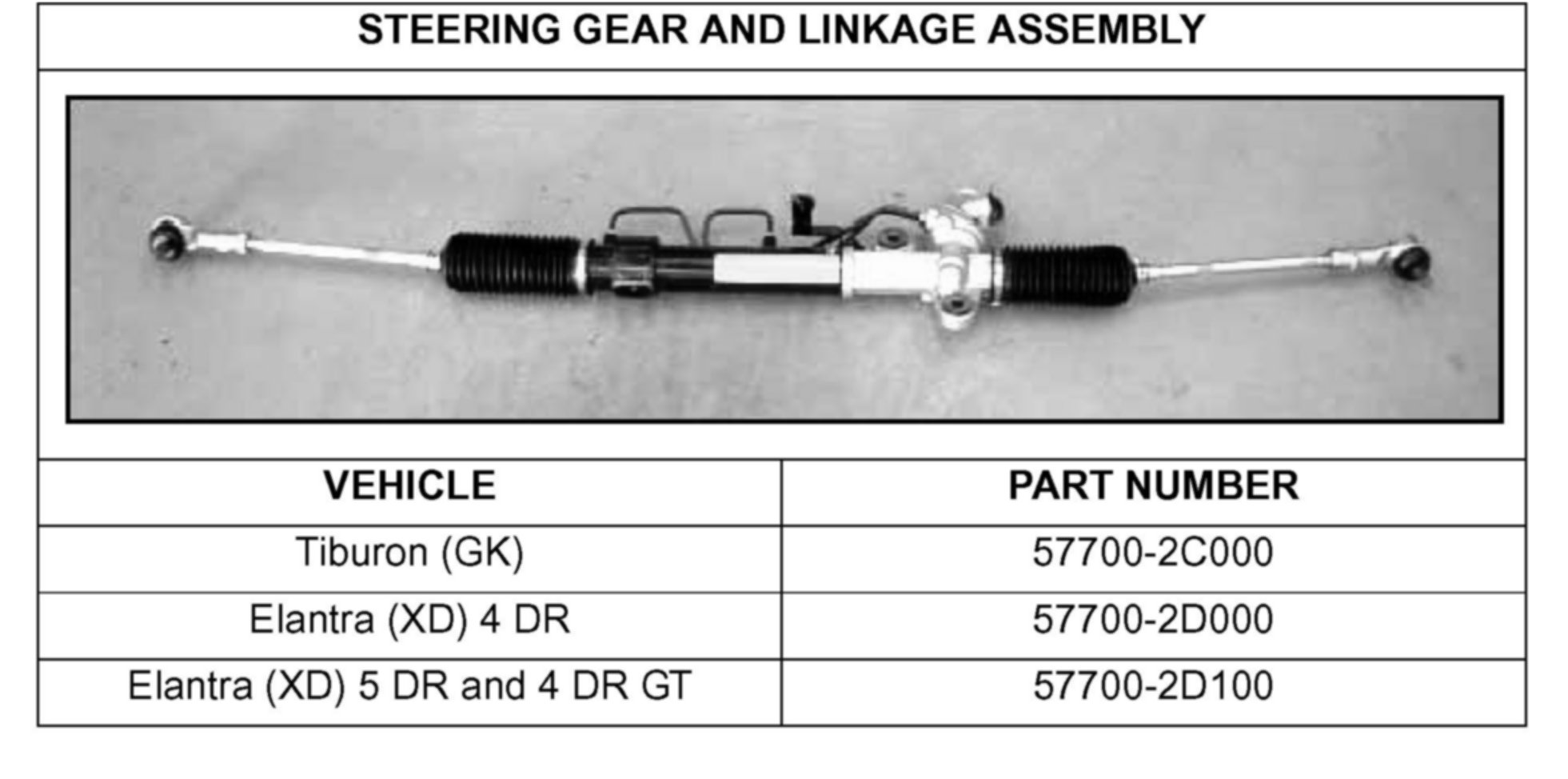 Some 2005 MY Elantra (XD) and Tiburon (GK) vehicles may have been manufactured with threaded portions of the steering gearbox assembly's left and right inner ball joint assemblies with internal cracks in the material structure. If the threaded portion of a steering gearbox assembly's inner ball joint assembly was to break as a result of the internal crack, the tie rod end assembly would no longer be attached to the steering gear box. This would prevent steering control of that front wheel by the separated tie rod.