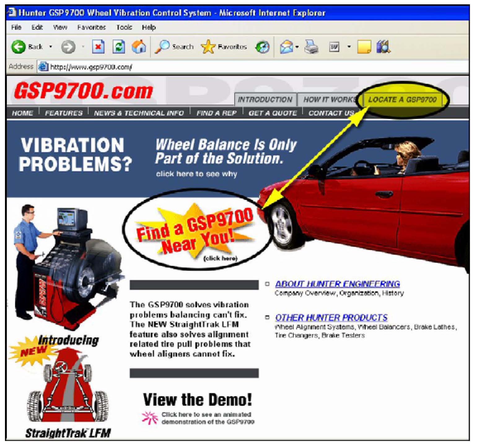 To correct vehicle vibrations caused by wheel out-of-round and tire stiffness variations, access to a Hunter GSP 9700 or equivalent wheel balancing machine is necessary. If you do not have access to such equipment, it may be located through the Hunter website (www.gsp9700.com).