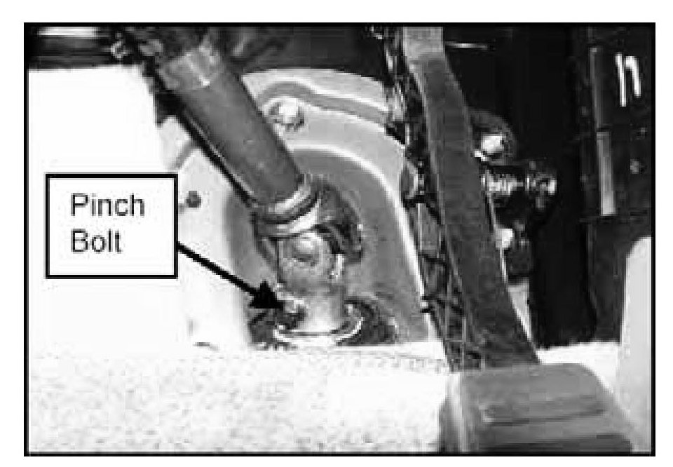 4. Remove the steering column shaft pinch bolt located behind the gas pedal.