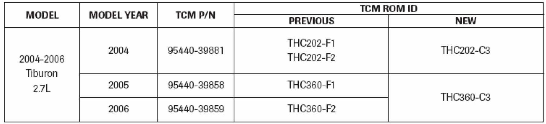 2004-06 TIBURON 2.7L TCM REPROGRAMMING PROCEDURE - 2-3 SHIFT FEELMODEL: TIBURON 2.7L