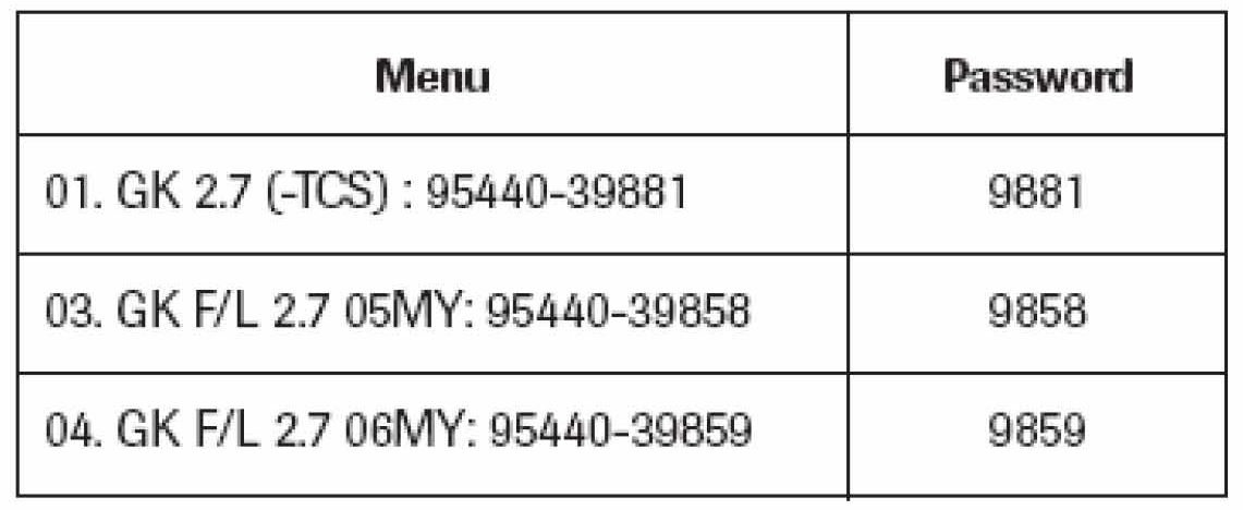This article provides the procedure to reprogram the Transaxle Control Module (TCM) software for 2004~06 Tiburon 2.7L vehicles using the Hi-Scan Pro.