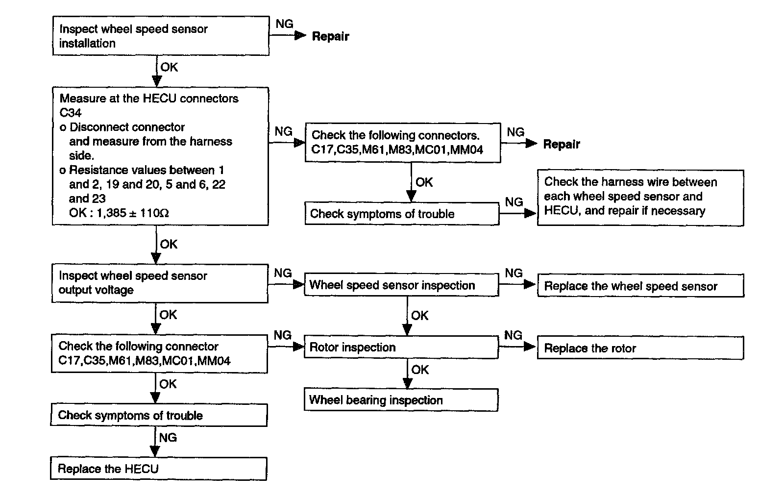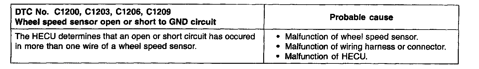 DTC No. C1203 Wheel speed sensor open or short to GND circuit