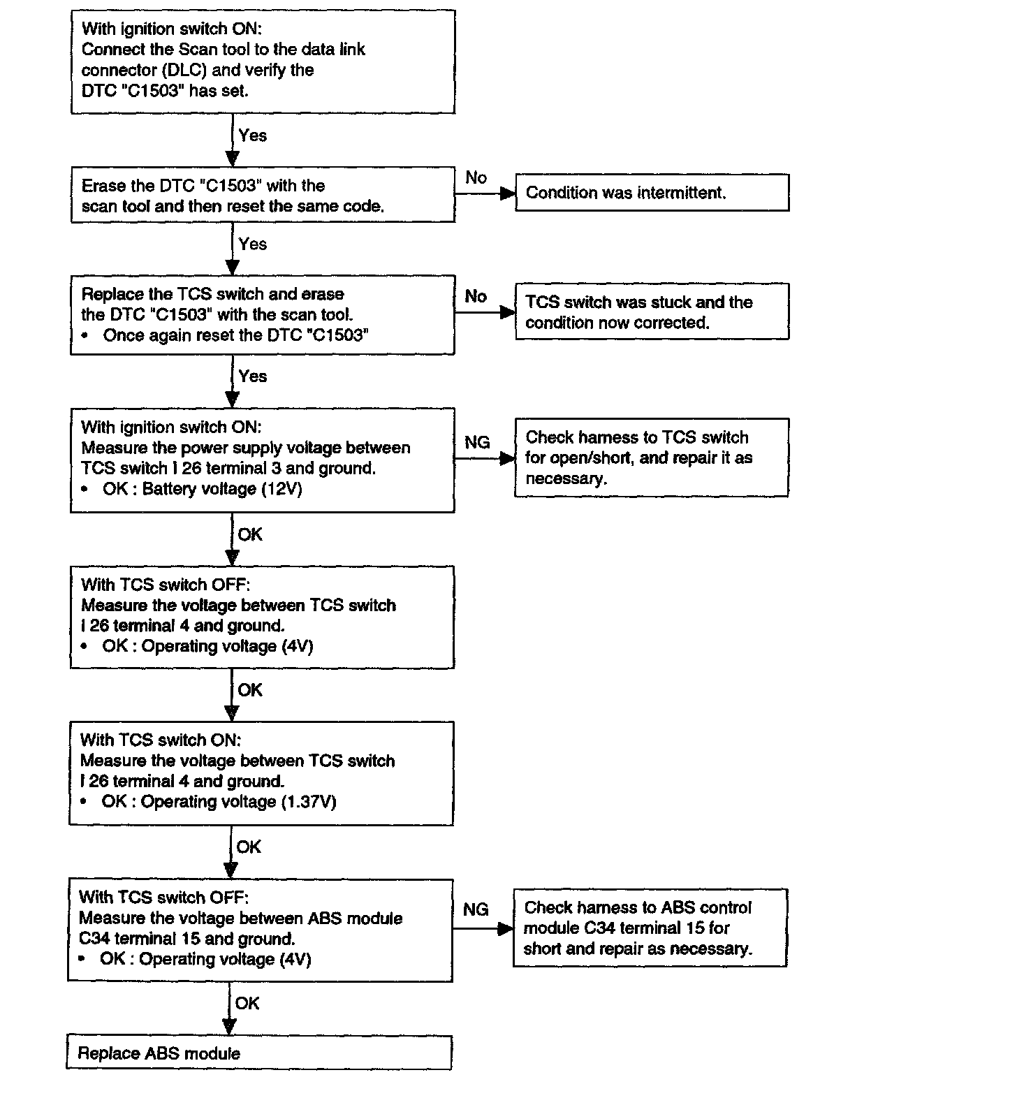 DTC No. C1503 TCS switch error