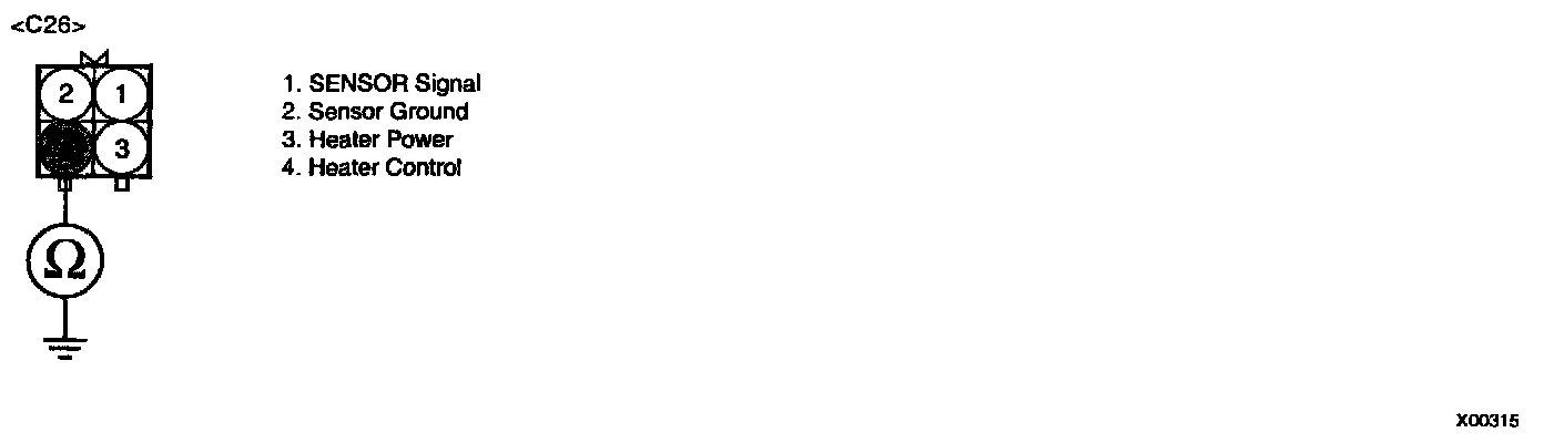 3. Measure resistance between terminal 4 of HO2 sensor harness connector and chassis ground.