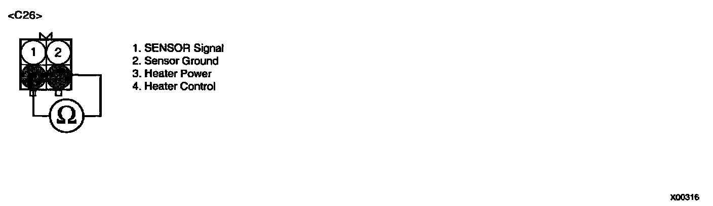 3. Measure resistance between terminals 3 and 4 of the sensor connector(To Component side).