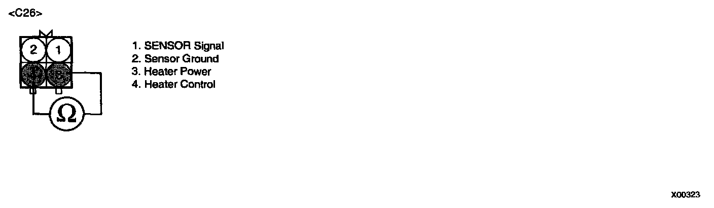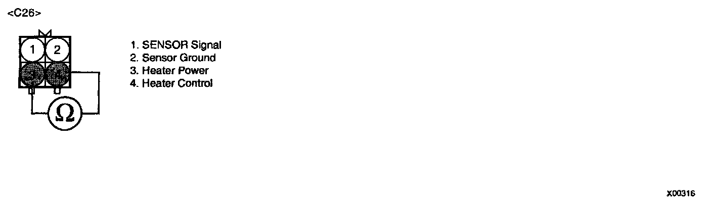 3. Measure resistance between terminals 3 and 4 of the sensor connector(To HO2 sensor side).