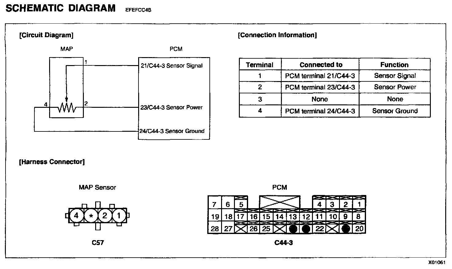 - Check for an open or short to ground in harness between the PCM and the MAP sensor.
