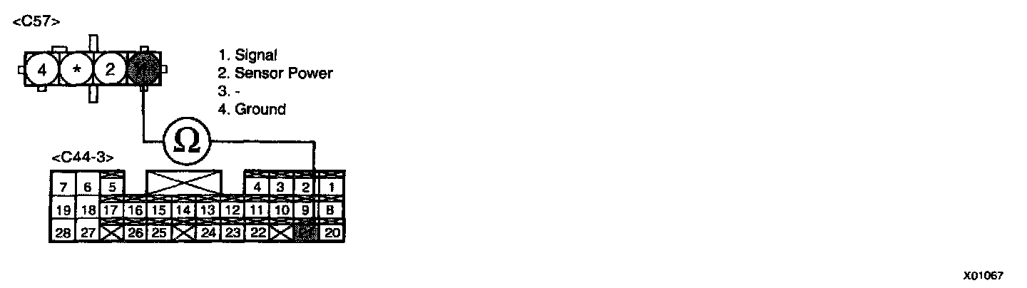 3. Measure resistance between terminal "1" of the MAP sensor harness connector and terminal 21/C44-3 of PCM harness connector.