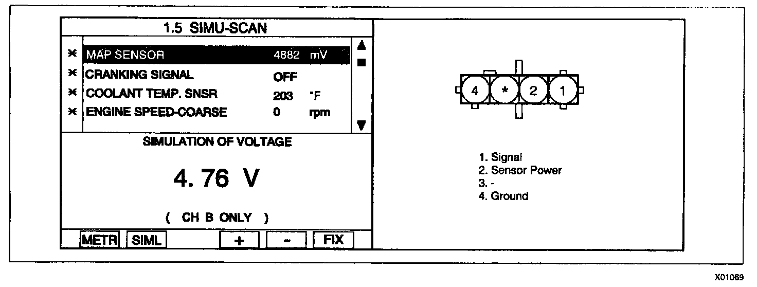 4. Simulate voltage at terminal 1 of MAP sensor signal connector.