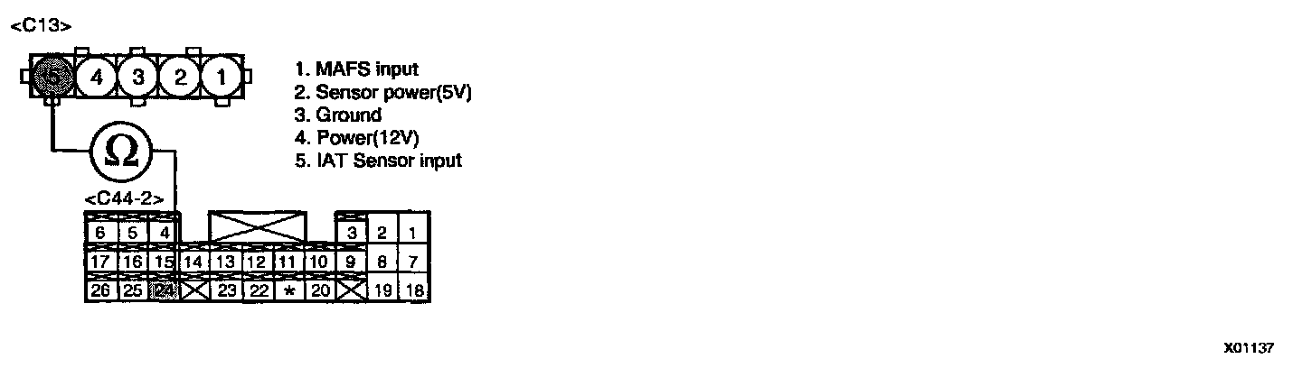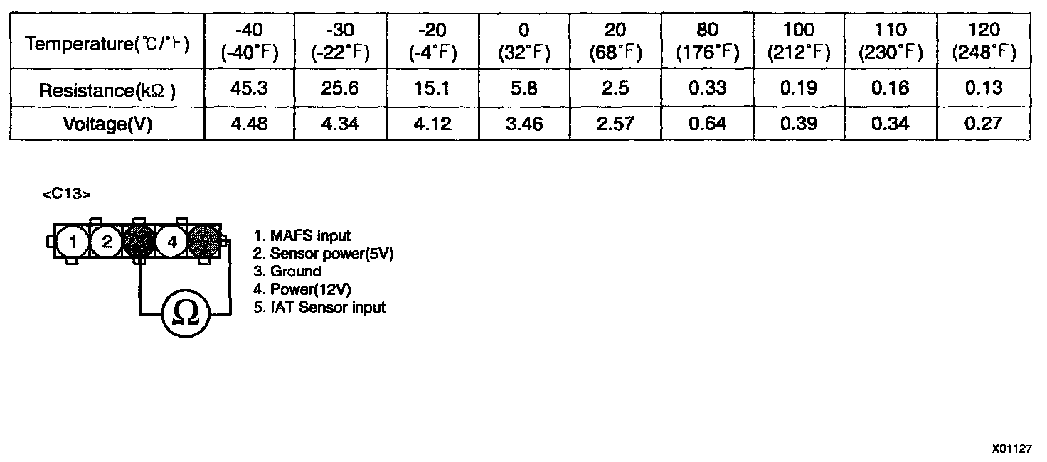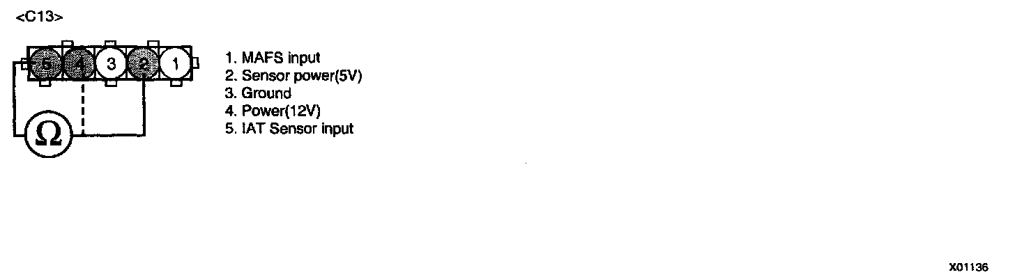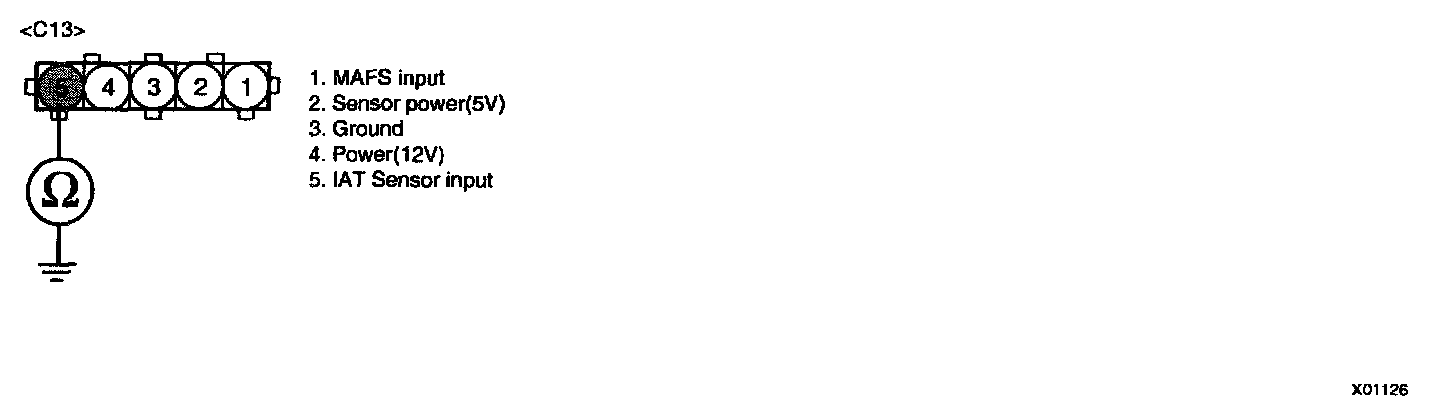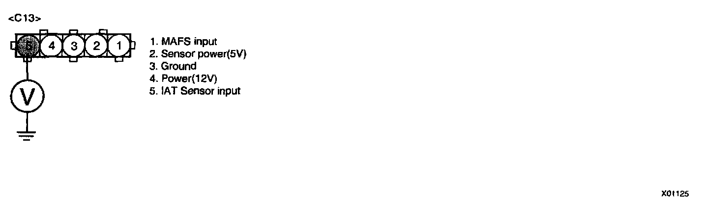 NOTE: Be sure that 5 V reading is caused just by Intake Air Temperature Sensor Pull-up voltage not short to another 5 V source such as MAFS power.