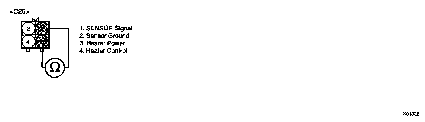 3. Measure resistance between terminal 1 and 3 of HO2 sensor harness connector.