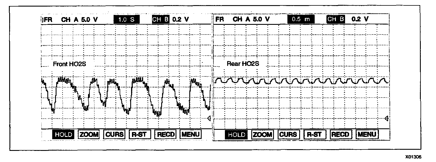 Verify that the signal is varying from rich(above 0.45 V) to lean(below 0.45 V) a minimum of 3 times in 10 seconds (voltage will vary between 0.1 and 0.9 V).