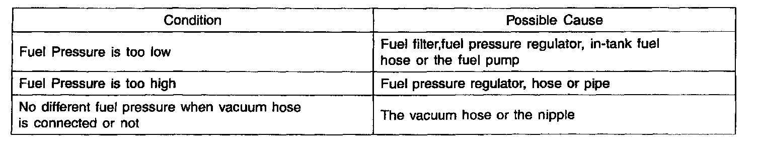4. Disconnect the vacuum hose from the pressure regulator, and plug the hose end.Measure the fuel pressure at idle.