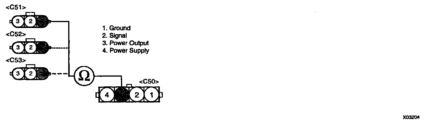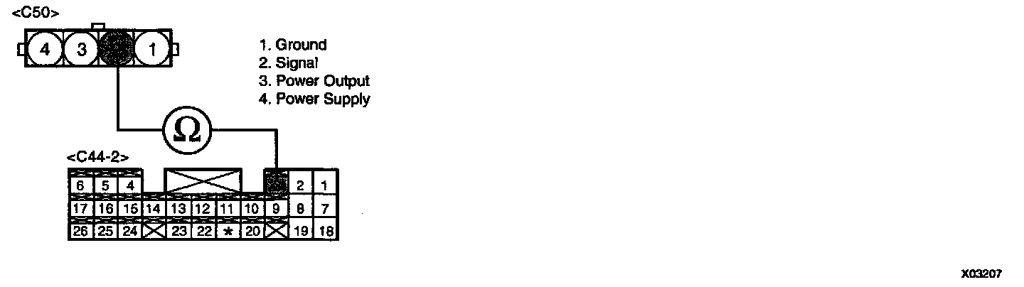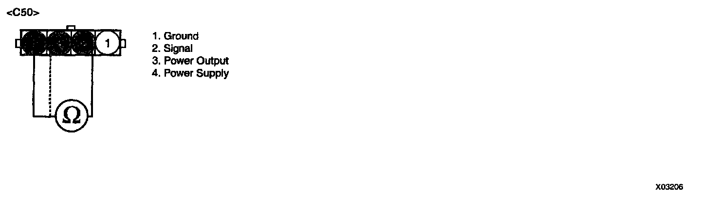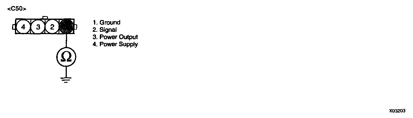 3. Measure resistance between terminals "2" and "4" of IG failure sensor harness connector.