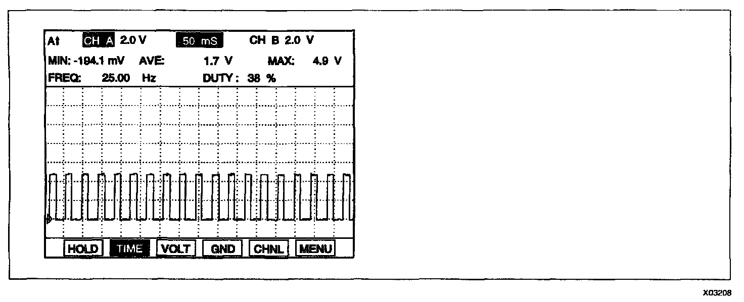 3. Check that RPM meter on instrument panel is operating correctly and the signal waveform of IG failure sensor at terminal 4.