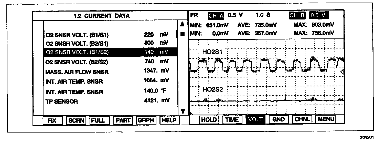 3. Monitor the HO2S parameters and signal waveform on scantool.