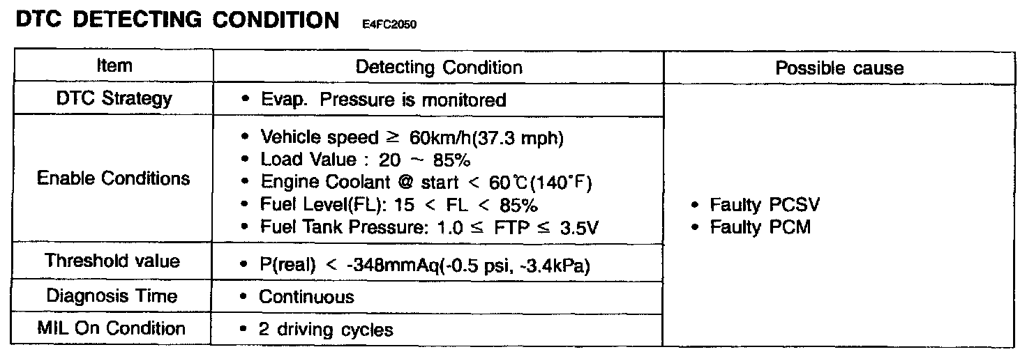 If the PCSV is open stuck, the PCM determines that a fault exists and a DTC is stored.red.