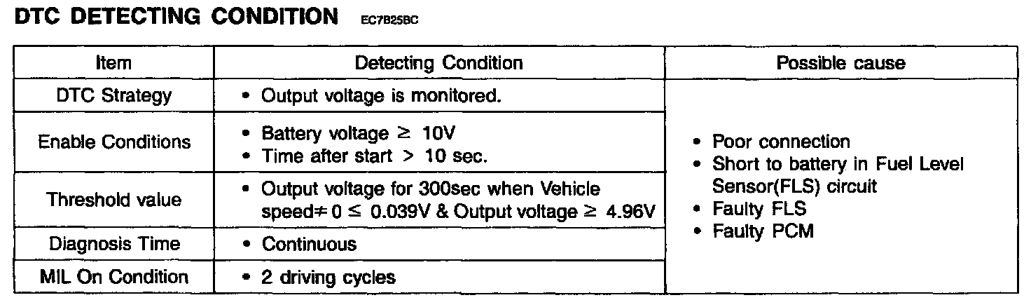 DTC P0462 FUEL LEVEL SENSOR "A" CIRCUIT LOW INPUT