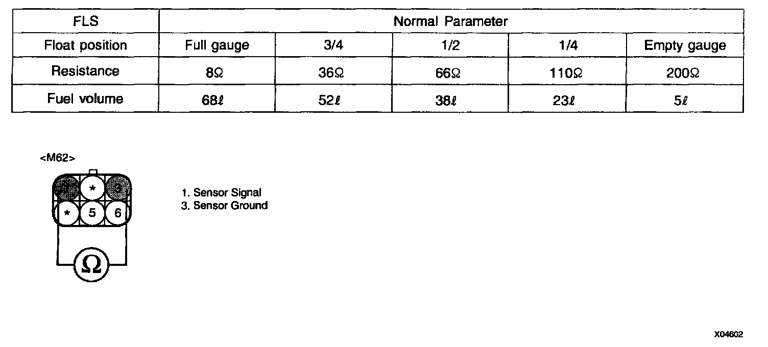 3. Measure resistance between terminal 1 and 3 of the Fuel Level Sensor connector during lifting fuel float up and down (To Component Side).
