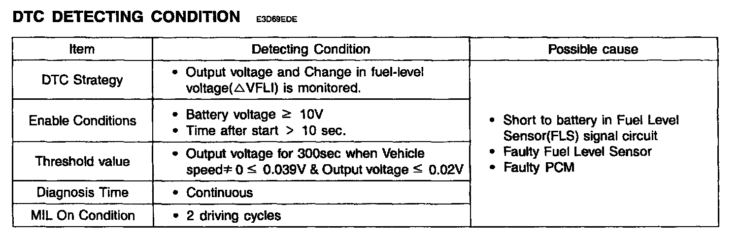 DTC P0463 FUEL LEVEL SENSOR "A" CIRCUIT HIGH INPUT