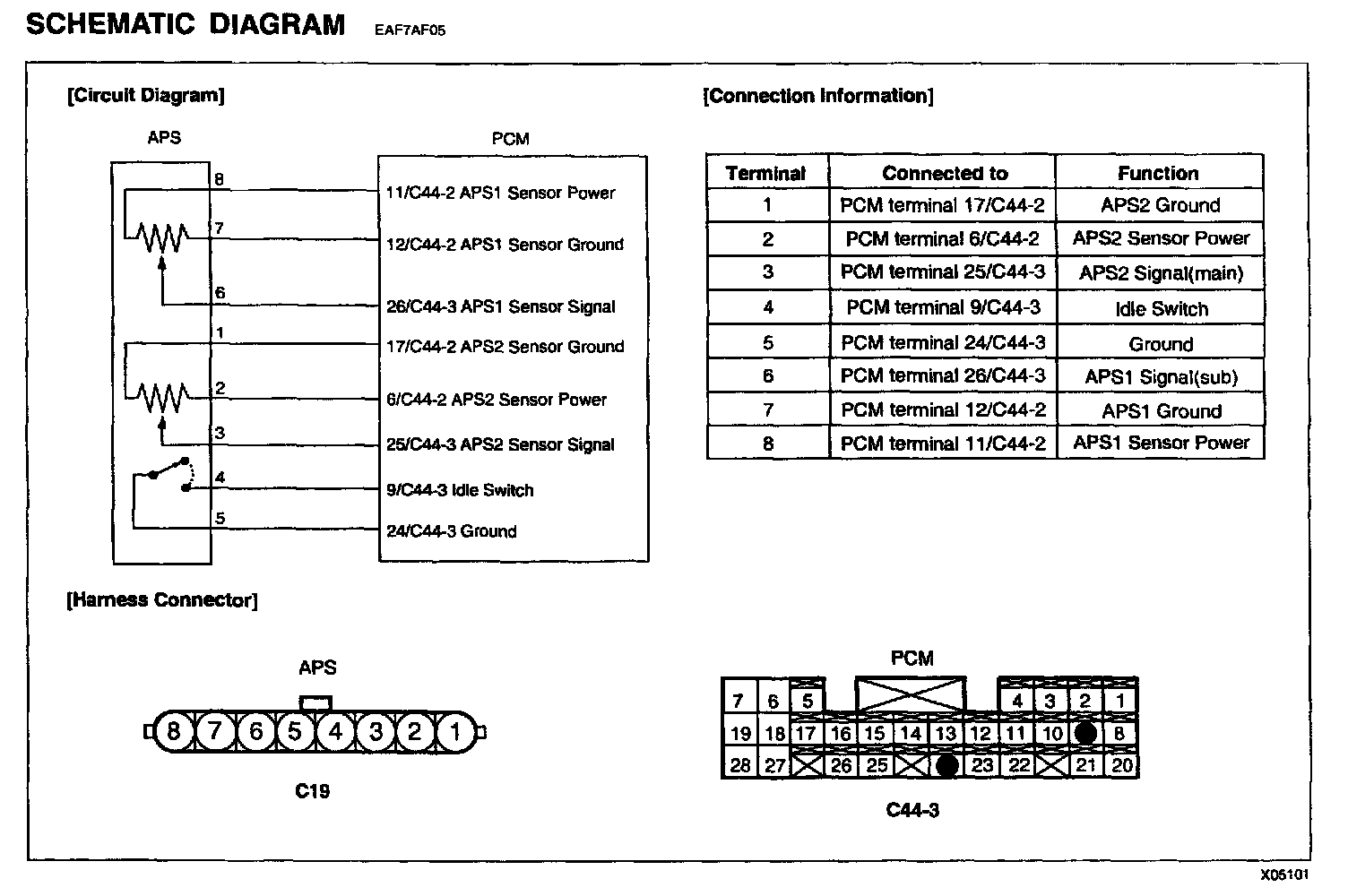 2. Disconnect APS connector and PCM connector.