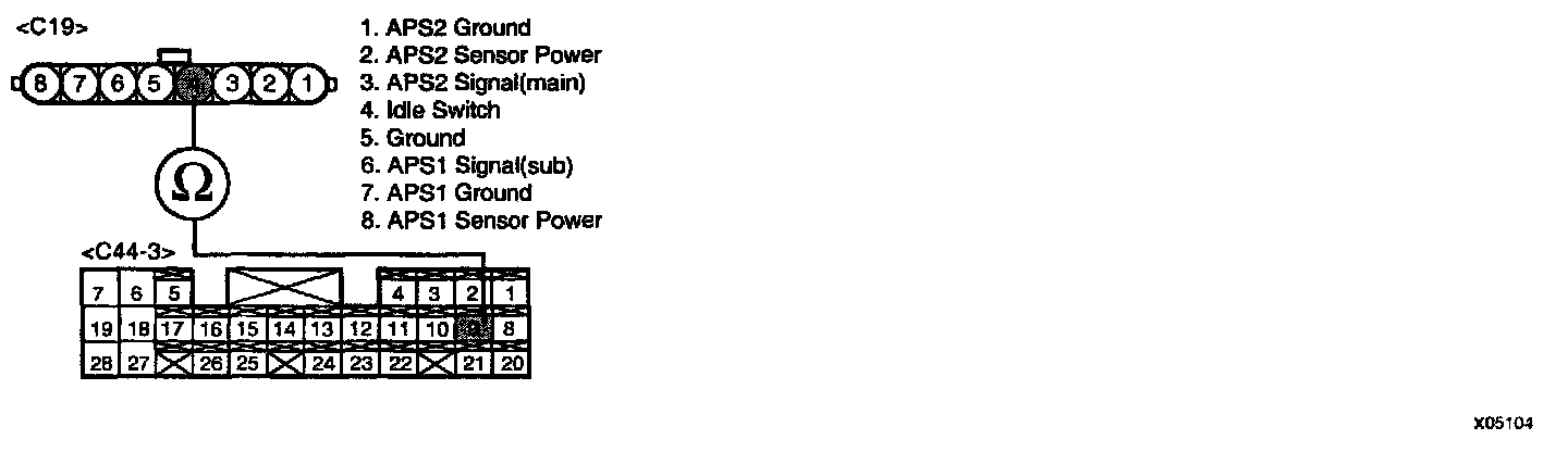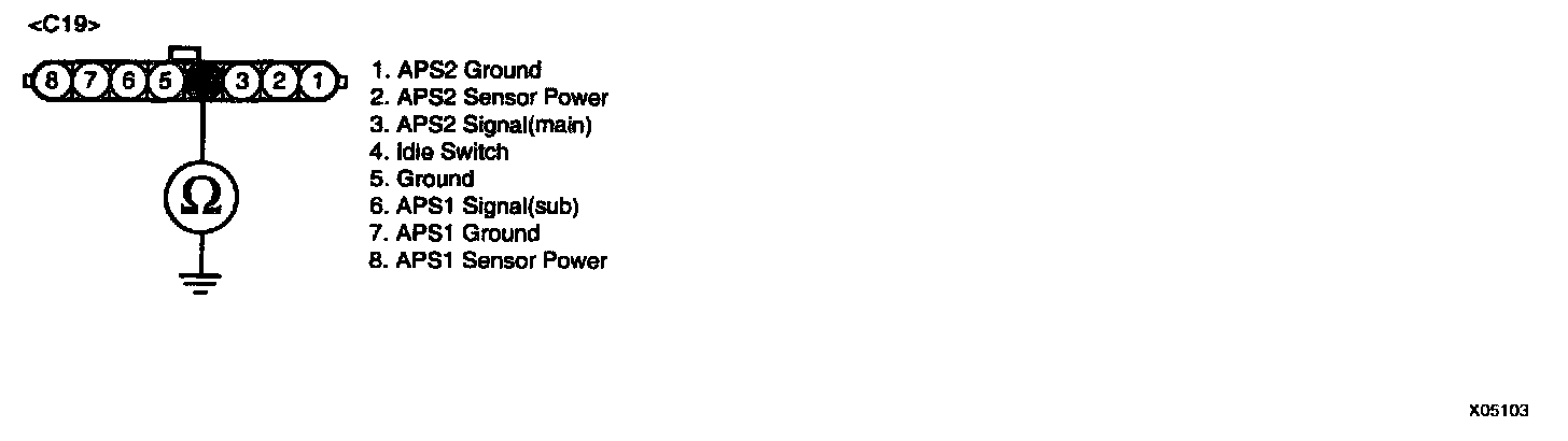3. Measure a resistance change between terminals "4" and "5" of the APS connector.