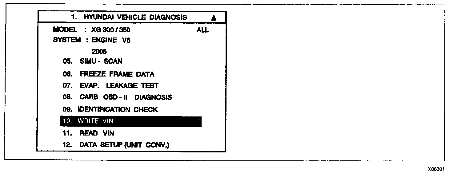 Regulations require that all 2005 and subsequent model year vehicles shall have the Vehicle Identification Number(VIN) available in a standardized format through the standardized data link connector in accordance with SAE J1979 specifications. Using a scan tool, PERFORM "VIN WRITING" procedure after replacing or reflashing a PCM