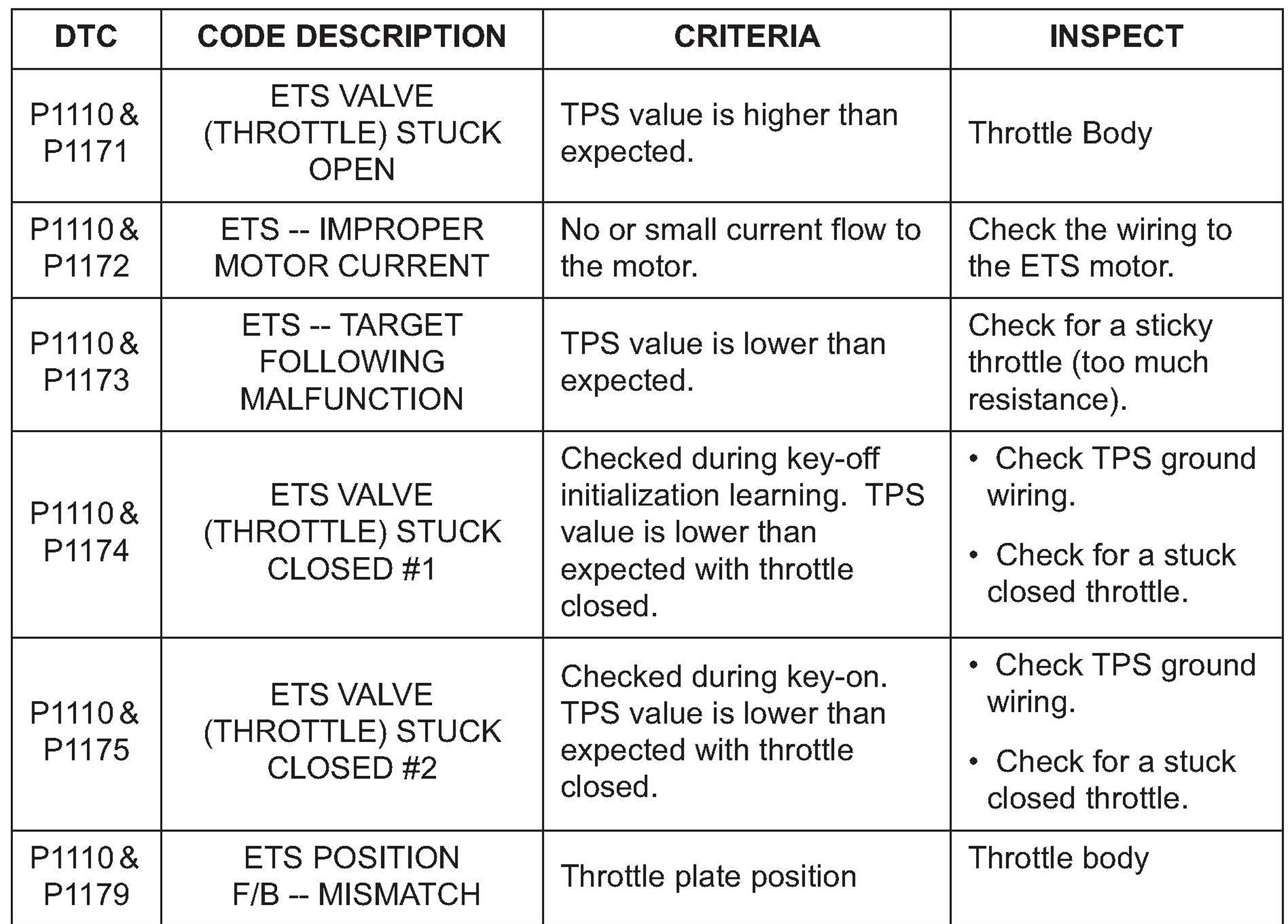 DTC: P1110 ETS System Malfunction