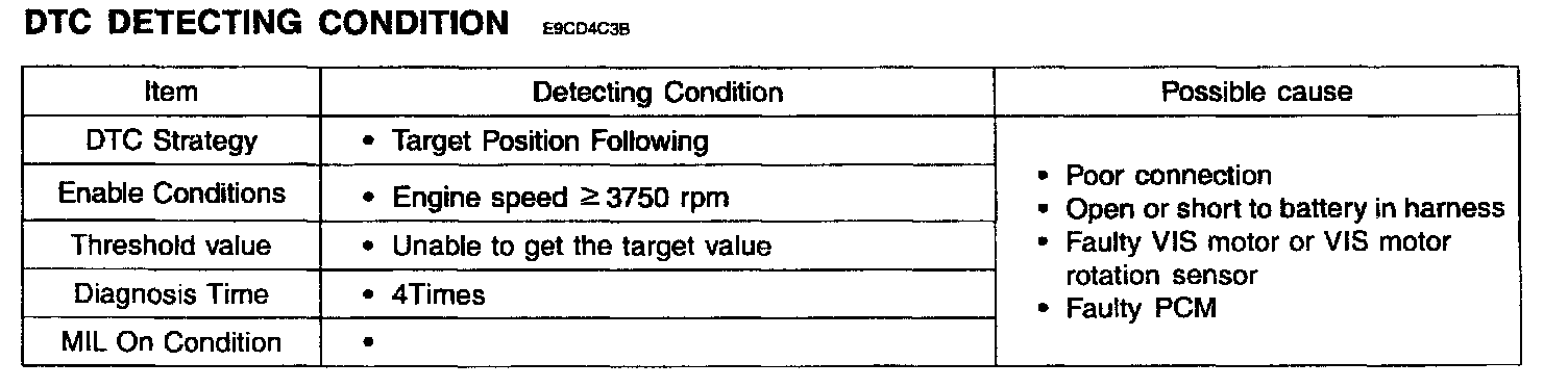 - Substitute with a known-good VIS motor rotation sensor and check for proper operation. If the problem is corrected, replace VIS motor rotation sensor and then go to "Verification of Vehicle Repair" procedure.