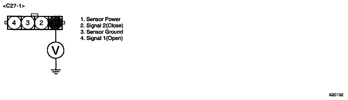 4. Measure voltage between terminal "1" of VIS motor rotation sensor harness connector and chassis ground.
