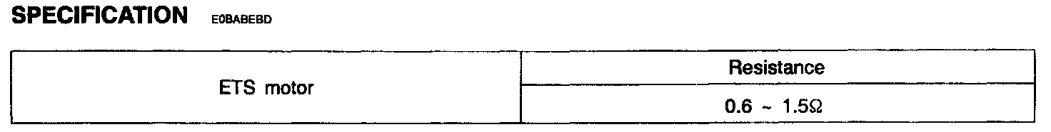 The ETS(Electronic Throttle System) is the throttle body whose throttle angle is controlled by control module. It consists of ETS-motor, Accelerator Position Sensor(APS),Throttle Position Sensor(TPS) and Limp home valve. The PCM sends throttle valve target opening value to ETS unit after calculating from signals such as APS and other input values. The ETS unit controls ETS motor to meet PCM's throttle valve target opening value. ETS motor's rotor rotates 780� from the the closed throttle valve to the wide open throttle valve and ETS motor controls the opening angle of throttle valve with 26 patterns; motor's rotor rotates 30° per one pattern.