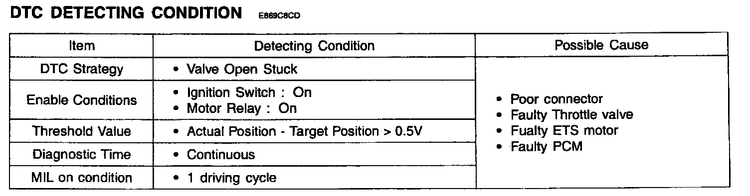 2. Visually check the overall ETS system(Throttle valve, ETS motor.APS and TPS). (Especially check the throttle valve for open stuck)