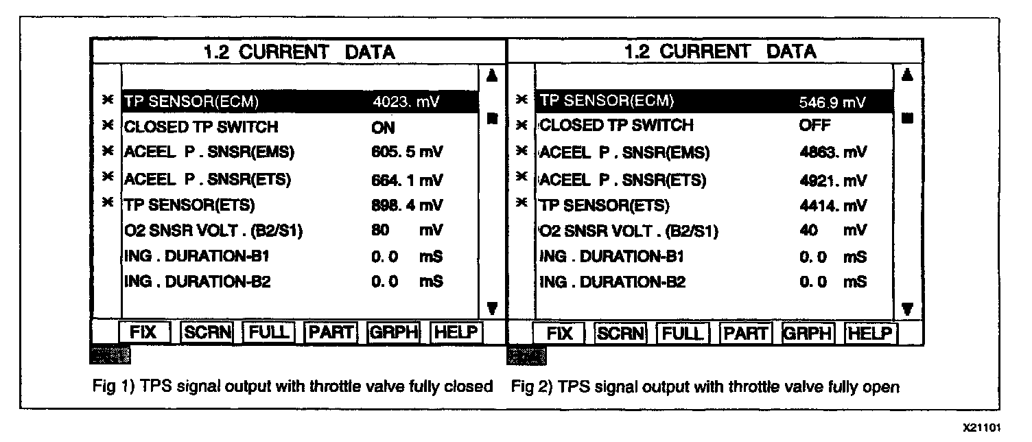 Approx. 0.3-0.9 V at idle & No load(TPS1 or TPS ETS)