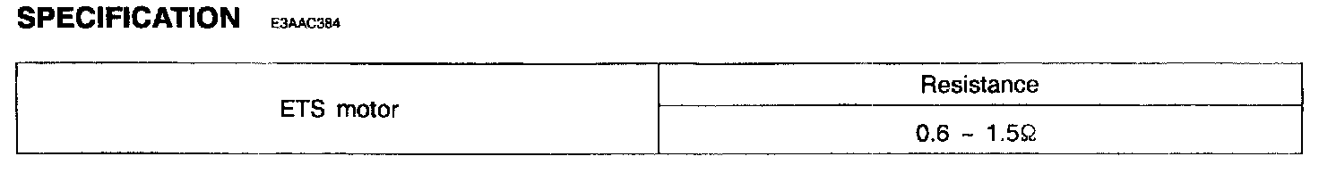The ETS(Electronic Throttle System) is the throttle body whose throttle angle is controlled by control module. It consists of ETS-motor, Accelerator Position Sensor(APS),Throttle Position Sensor (TPS) and Limp home valve. The PCM sends throttle valve target opening value to ETS unit after calculating from signals such as APS and other input values. The ETS unit controls ETS motor to meet PCM's throttle valve target opening value. ETS motor's rotor rotates 780� from the the closed throttle valve to the wide open throttle valve and ETS motor controls the opening angle of throttle valve with 26 patterns; motor's rotor rotates 30° per one pattern.