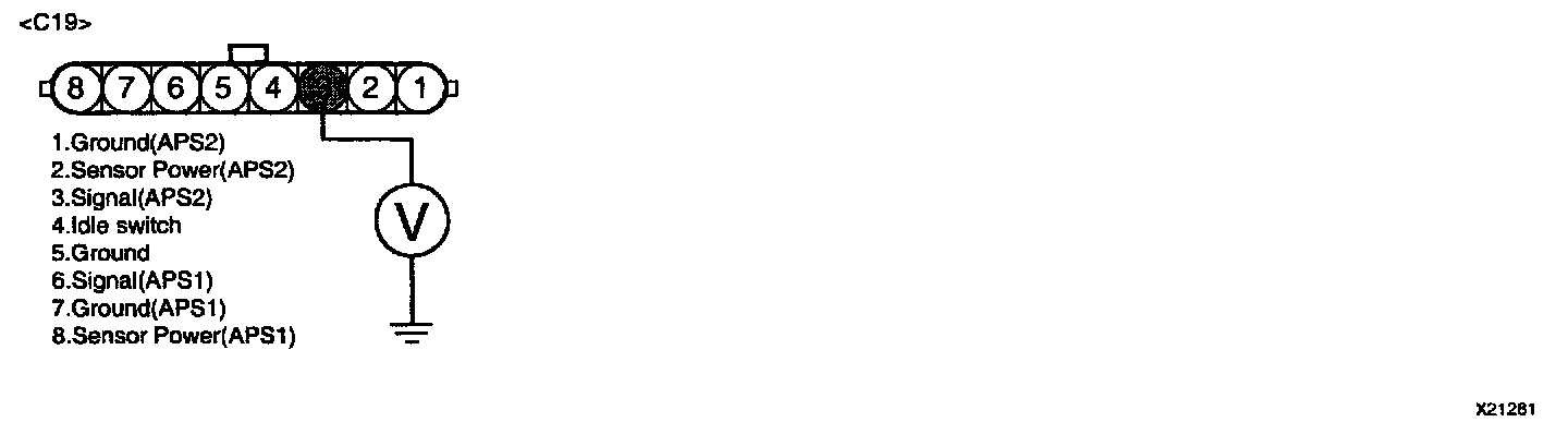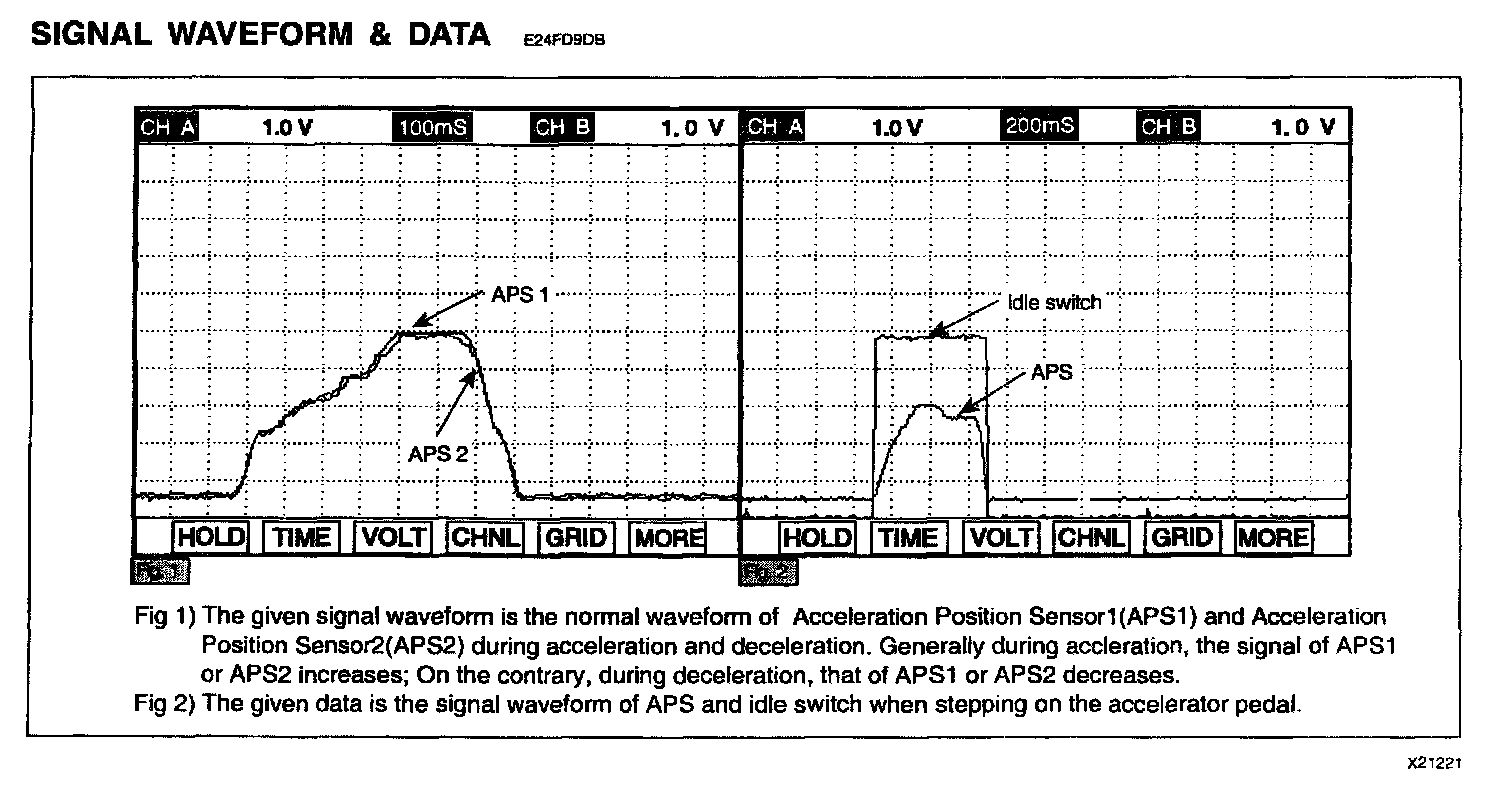 3. Measure APS 1 and APS 2 signal waveform when stepping on accelerator pedal.