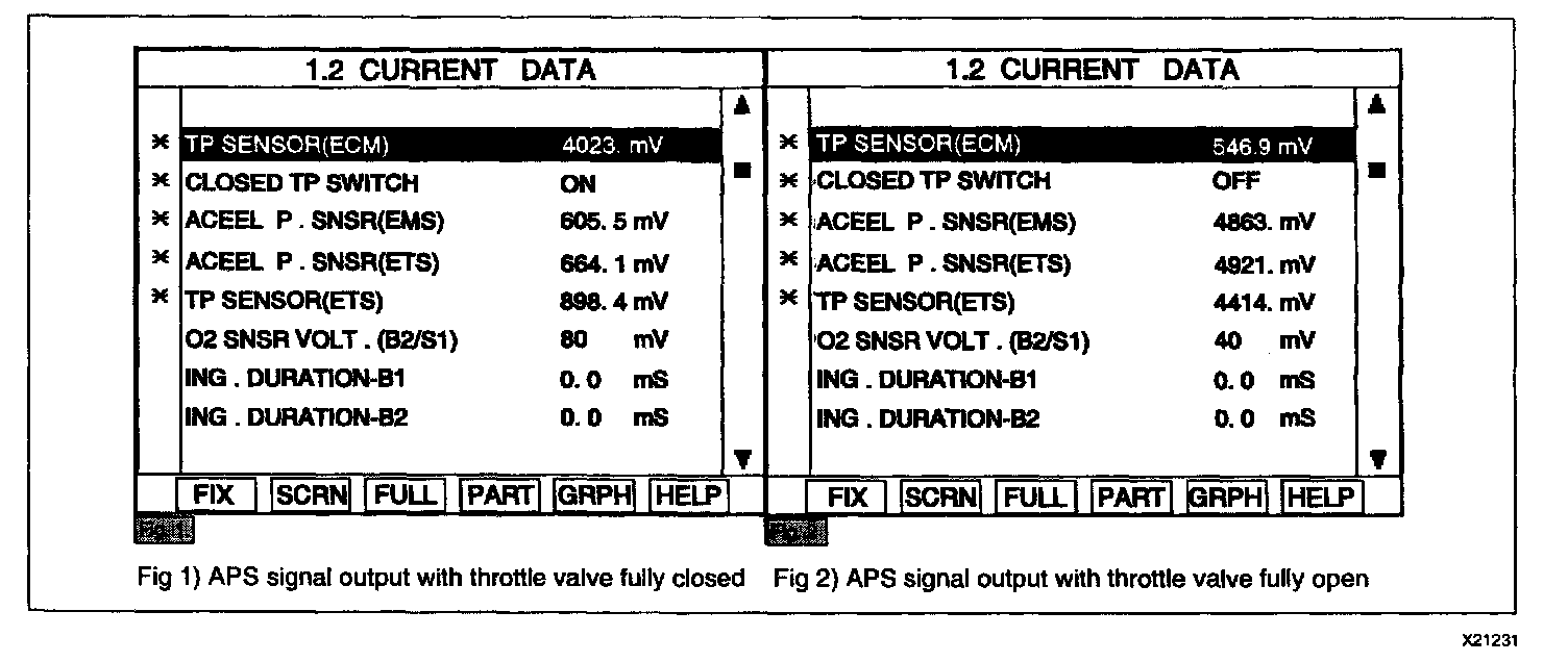 3. Monitor the "TPS1", "TPS1 ","APS1" and "APS2" parameter on the scantool.