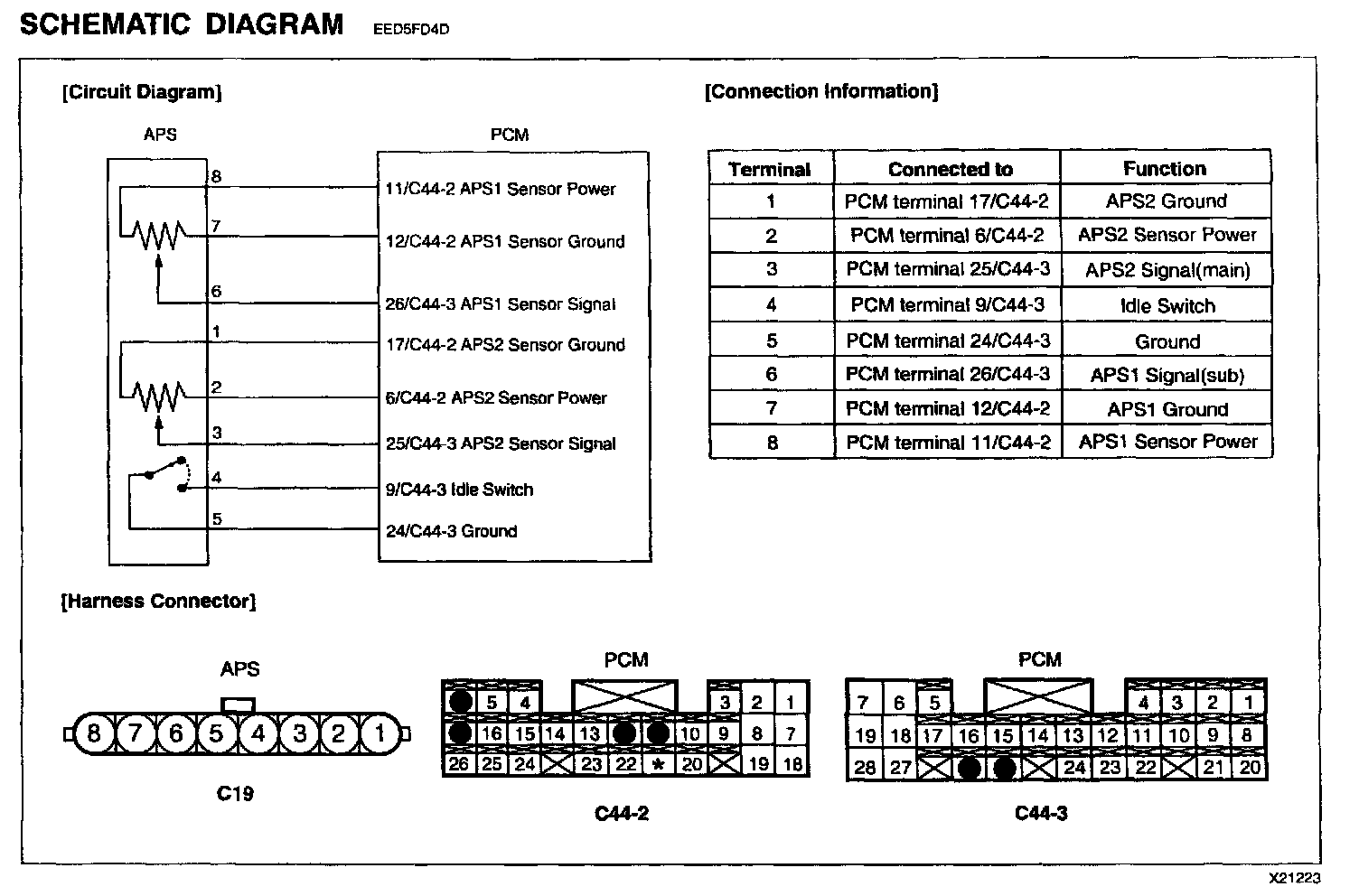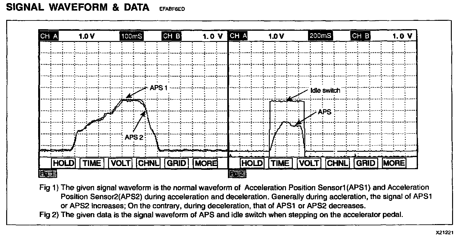 3. Measure APS 1 and APS 2 signal waveform when stepping on accelerator pedal.