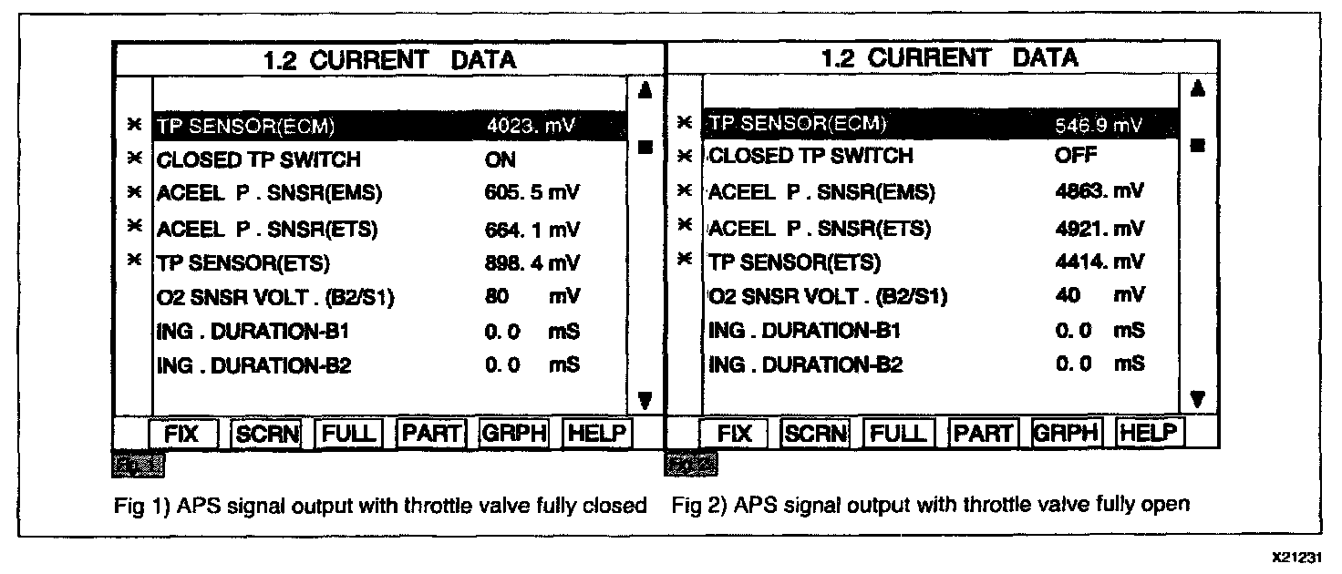 3. Monitor the "TPS1", "TPS1 ","APS1" and "APS2" parameter on the scantool.