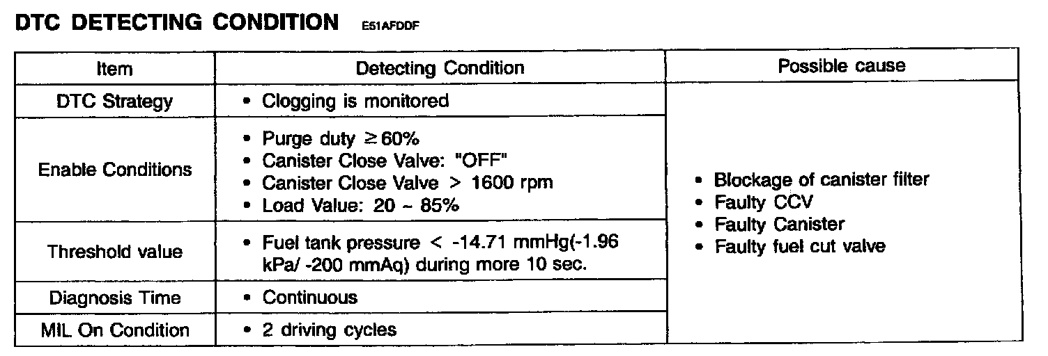 If the canister close valve is clogged, the PCM determines that a fault exists and a DTC is stored.