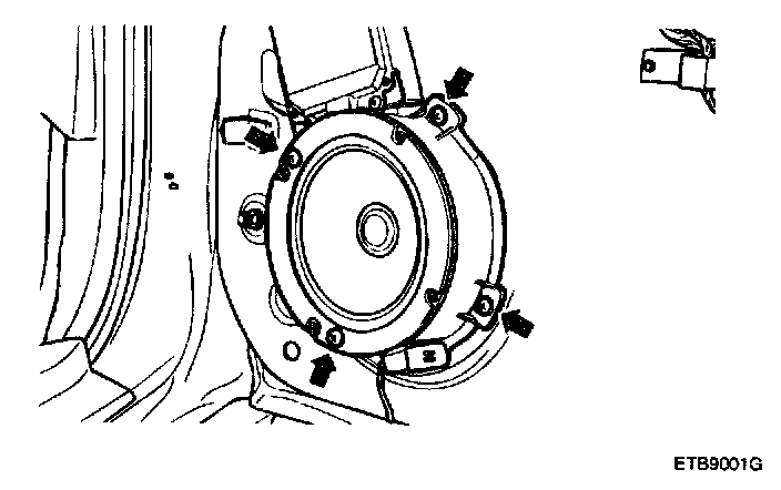 1. Remove the front door trim panel and detach the tweeter speaker inside of the trim panel.