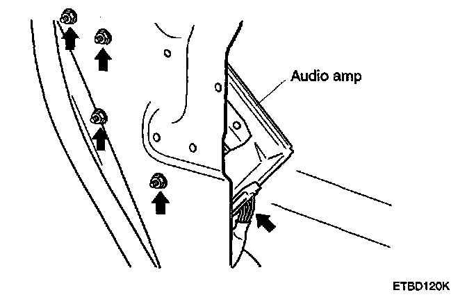 2. Disconnect the 12 P and 16 P connectors from audio amp.