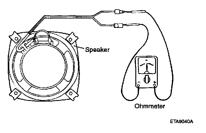 INSPECTION1. Check the speaker with an ohmmeter. If an ohmmeter indicates the correct impedance of the speaker when checking between the speaker (+) and speaker (-) of the same channel, the speaker is OK.